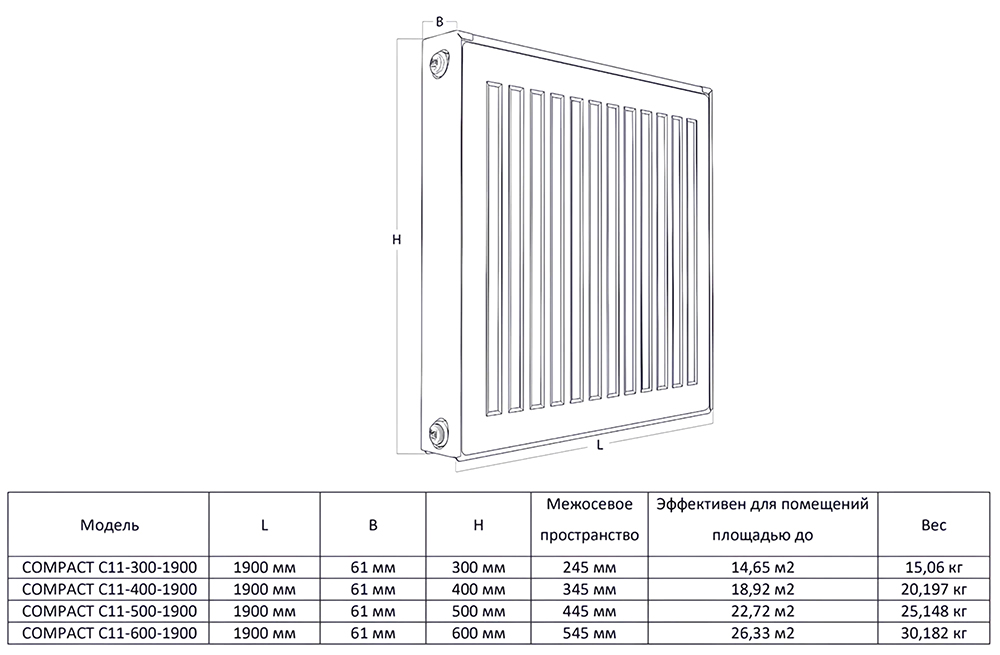 Радиатор панельный Royal Thermo COMPACT C11-400-1900 Silver Satin