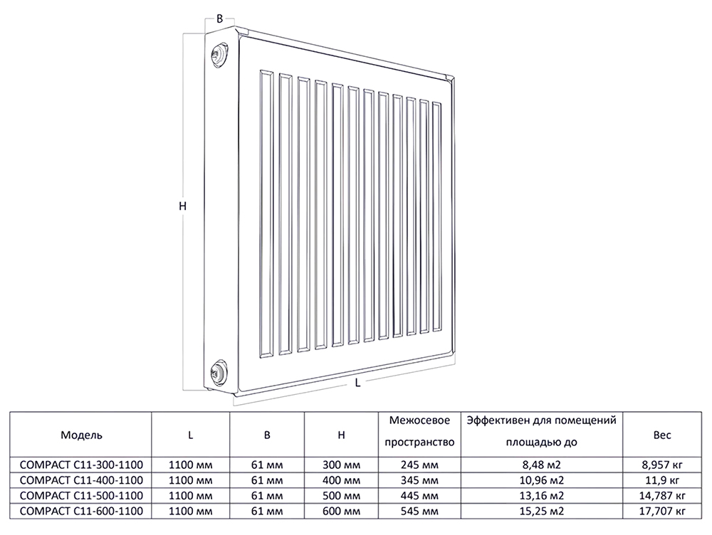 Радиатор панельный Royal Thermo COMPACT C11-500-1100 RAL9016