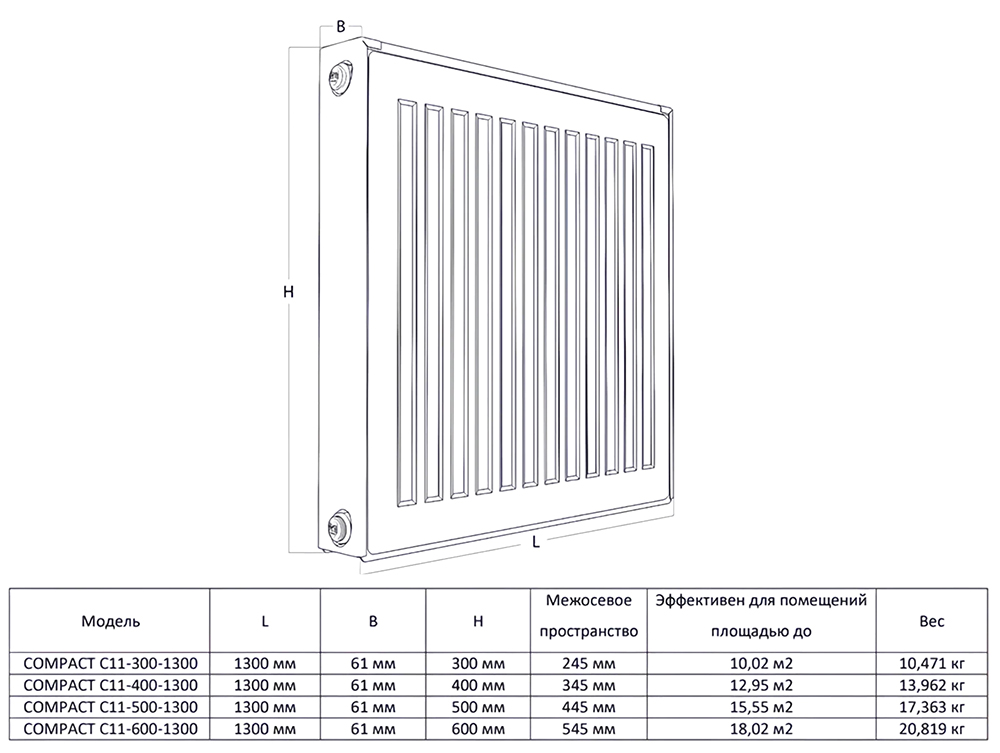 Радиатор панельный Royal Thermo COMPACT C11-600-1300 Noir Sable