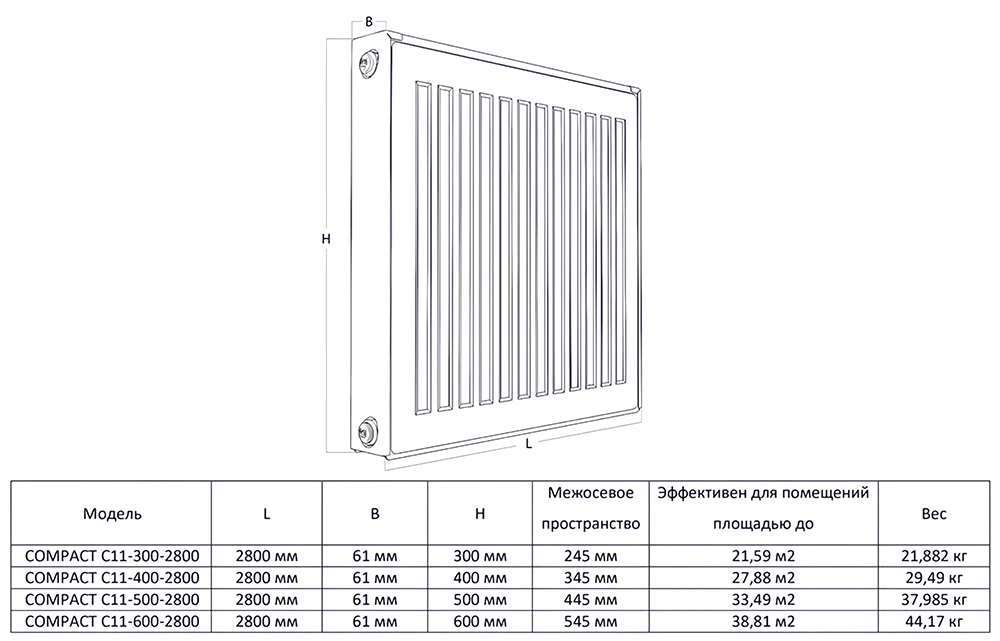 Радиатор панельный Royal Thermo COMPACT C11-600-2800 Noir Sable