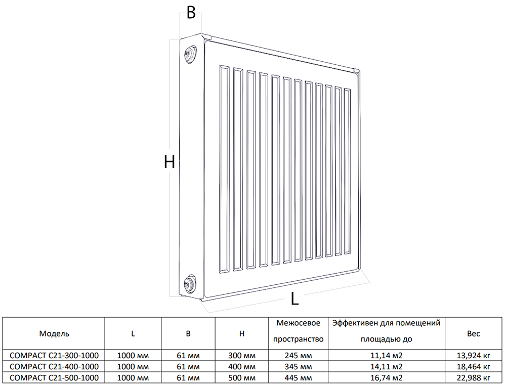 Радиатор панельный Royal Thermo COMPACT C21-300-1000 Silver Satin