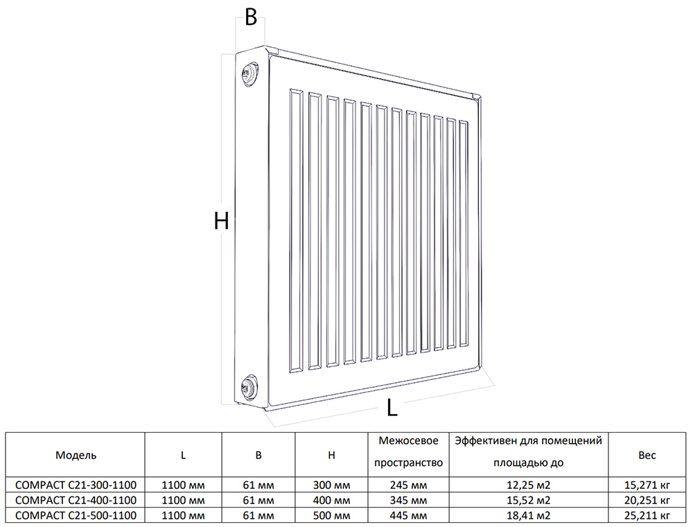 Радиатор панельный Royal Thermo COMPACT C21-300-1100 Silver Satin