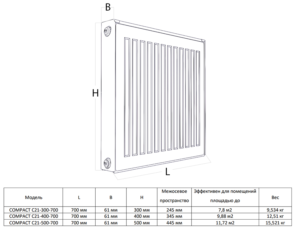 Радиатор панельный Royal Thermo COMPACT C21-500-700 RAL9016