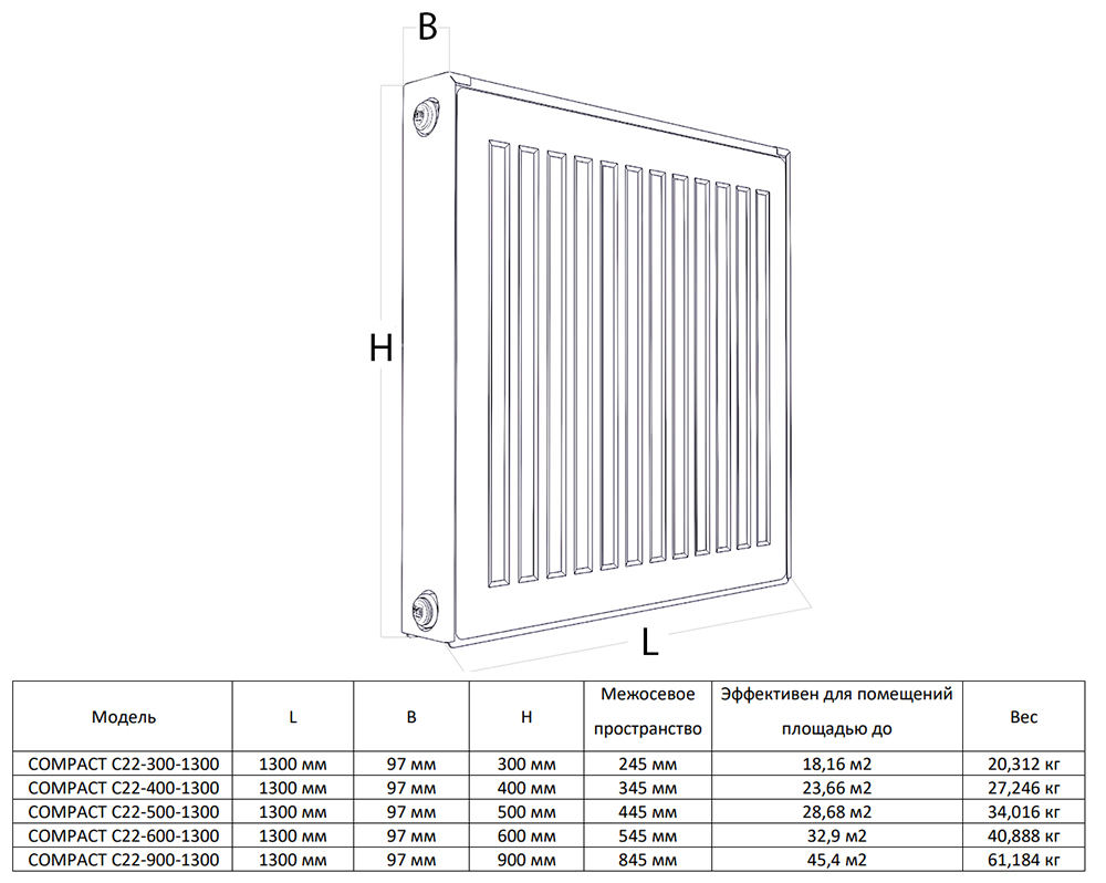 Радиатор панельный Royal Thermo COMPACT C22-400-1300 RAL9016