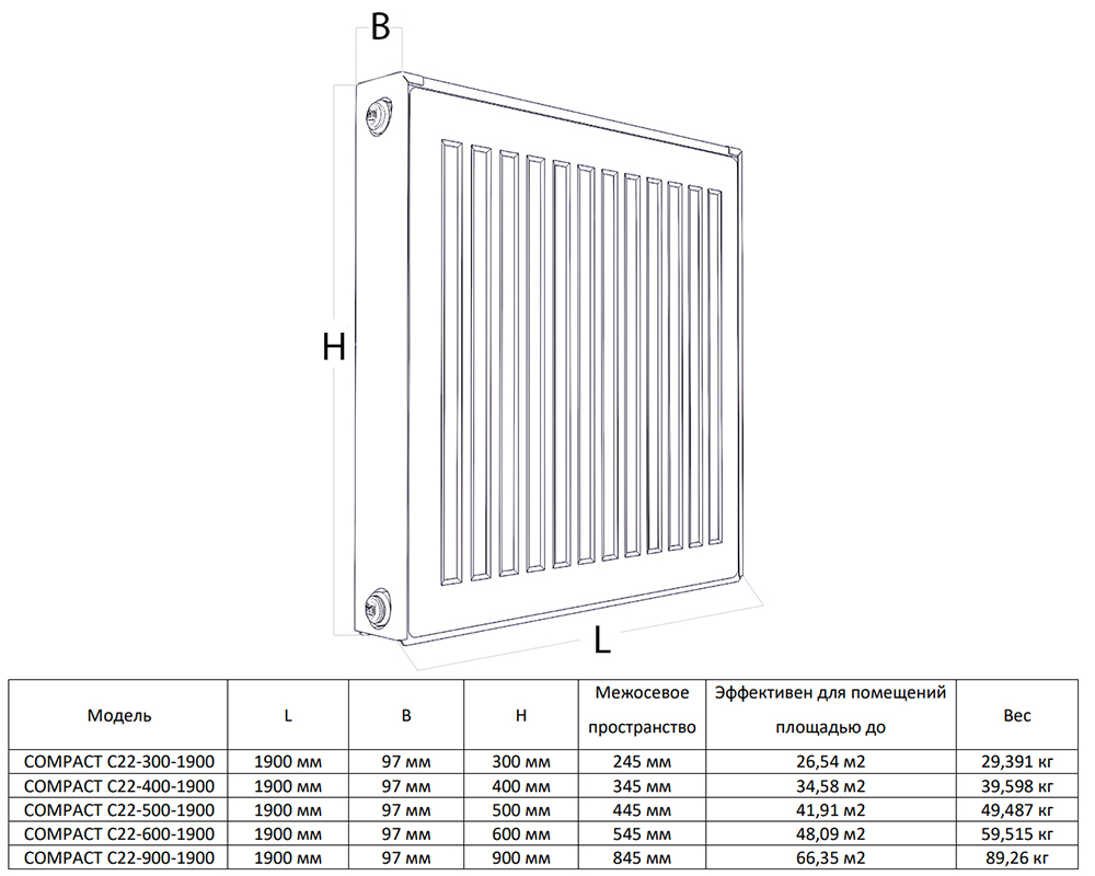 Радиатор панельный Royal Thermo COMPACT C22-400-1900 RAL9016
