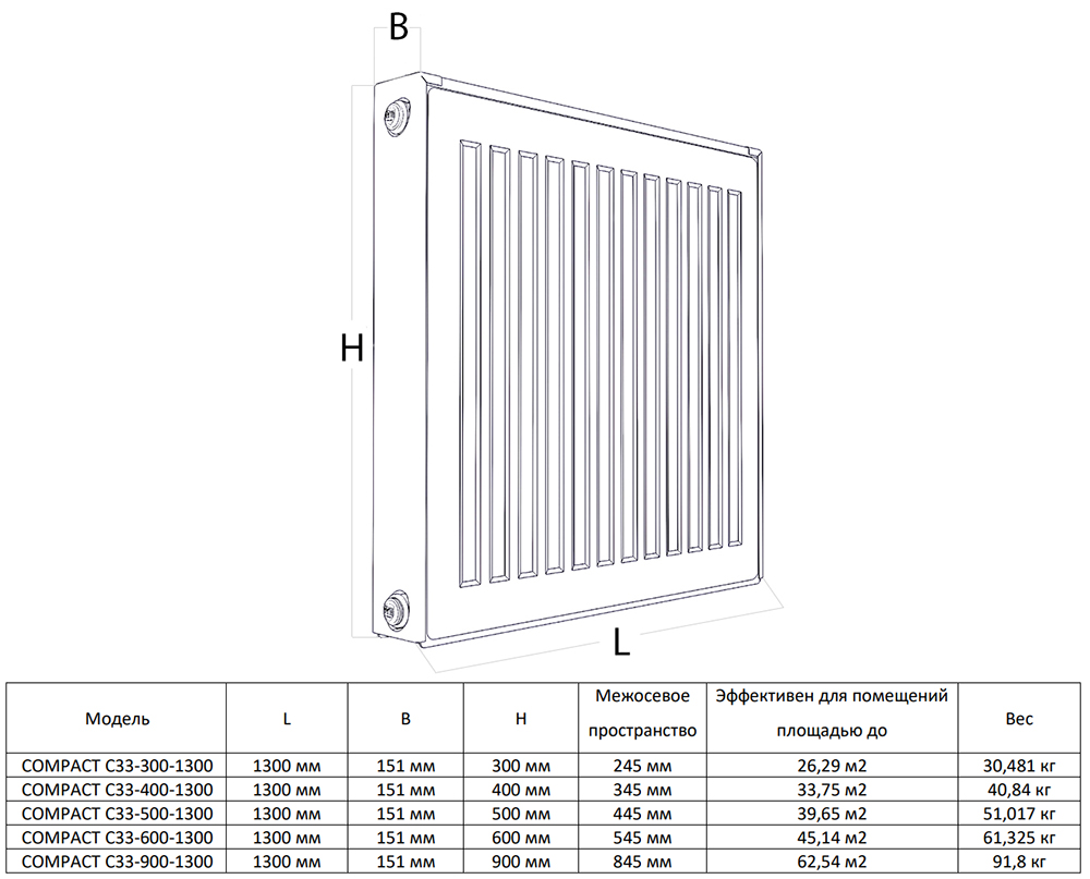Радиатор панельный Royal Thermo COMPACT C33-500-1300 RAL9016
