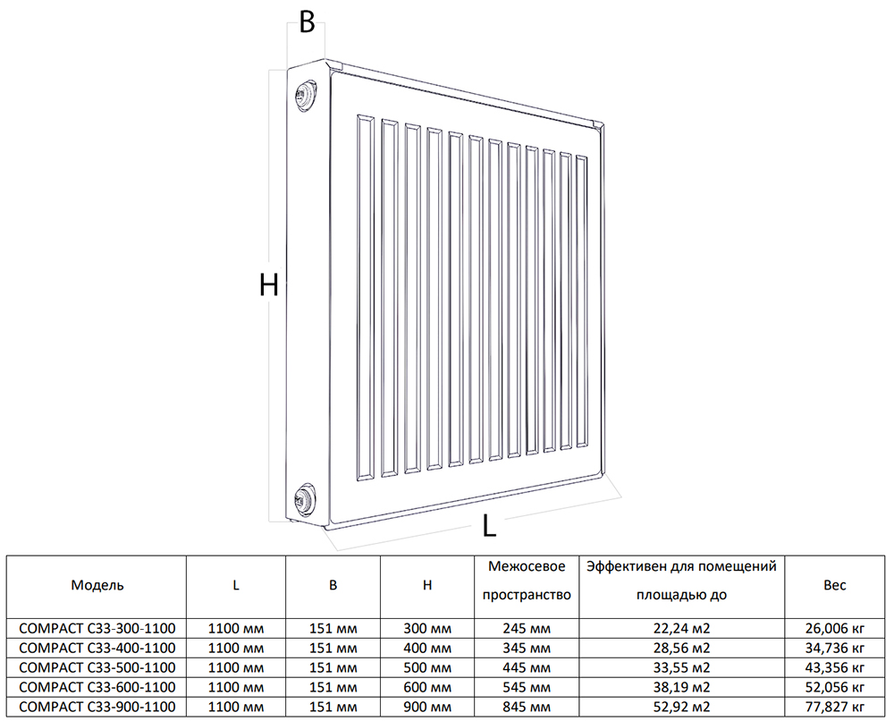 Радиатор панельный Royal Thermo COMPACT C33-600-1100 Noir Sable