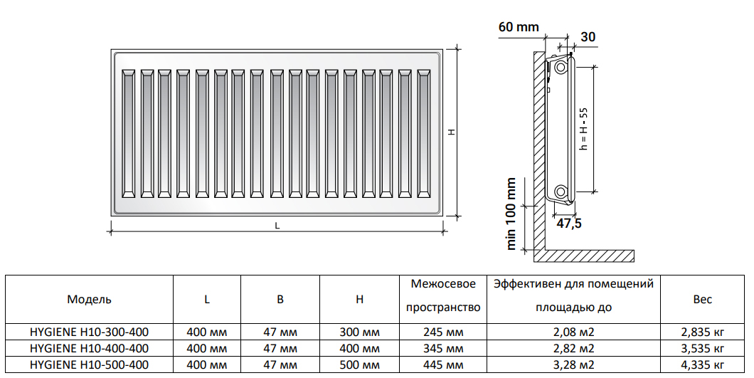 Радиатор панельный Royal Thermo HYGIENE H10-400-400 Noir Sable