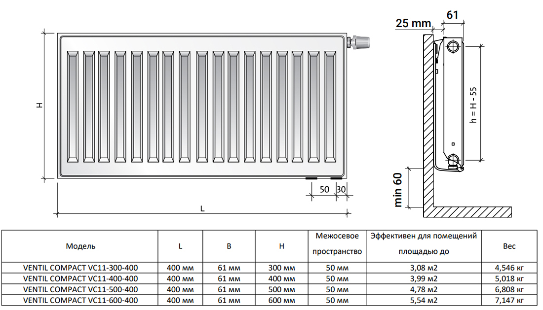 Радиатор панельный Royal Thermo VENTIL COMPACT VC11-500-400 Silver Satin