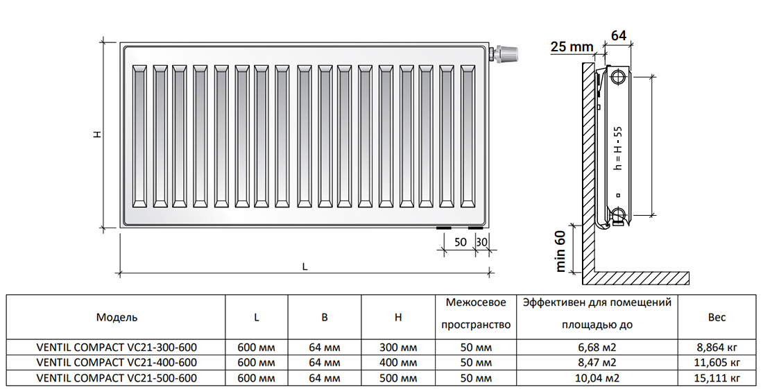 Радиатор панельный Royal Thermo VENTIL COMPACT VC21-300-600 Silver Satin