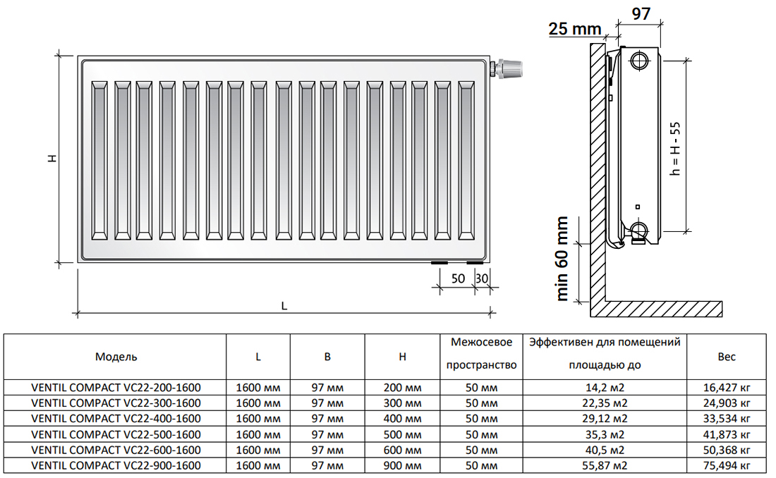 Радиатор панельный Royal Thermo VENTIL COMPACT VC22-900-1600 RAL9016