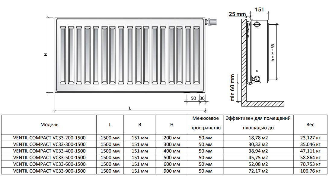 Радиатор панельный Royal Thermo VENTIL COMPACT VC33-200-1500 Silver Satin