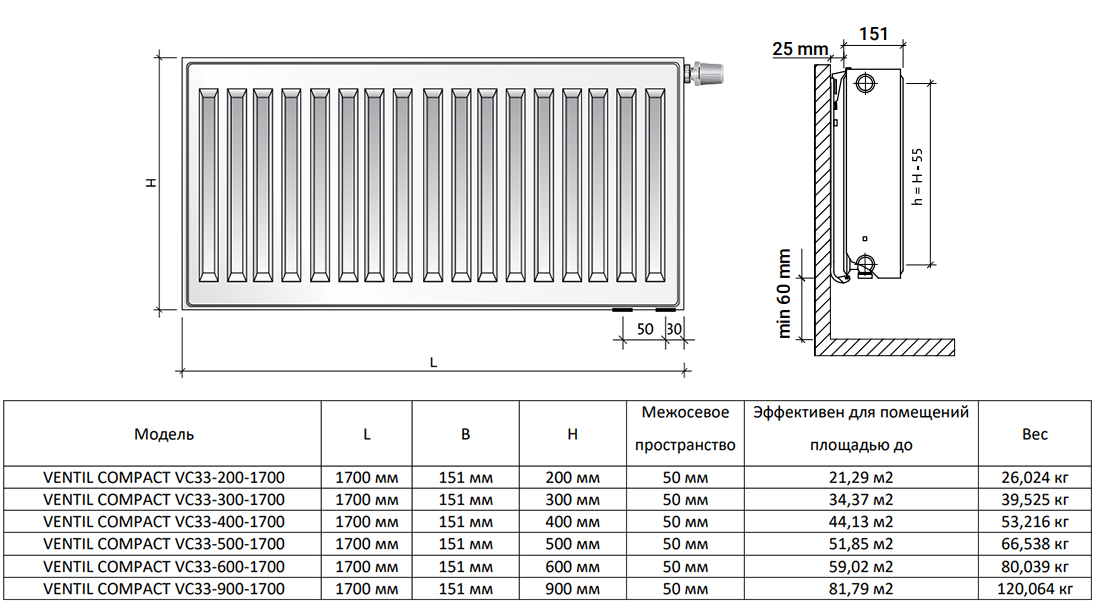 Радиатор панельный Royal Thermo VENTIL COMPACT VC33-200-1700 RAL9016
