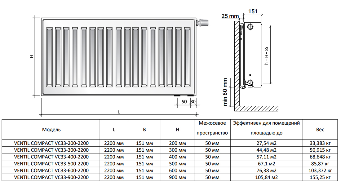 Радиатор панельный Royal Thermo VENTIL COMPACT VC33-300-2200 Noir Sable