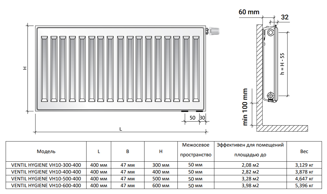 Радиатор панельный Royal Thermo VENTIL HYGIENE VH10-500-400 RAL9016