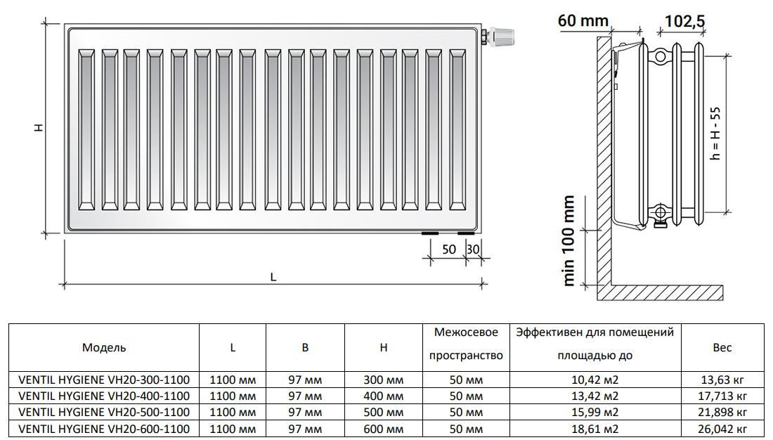 МодельVENTIL HYGIENE VH20-600-1100