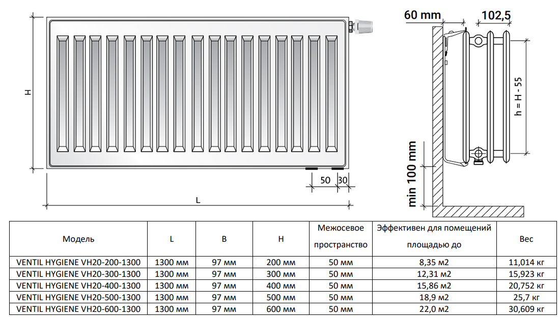Радиатор панельный Royal Thermo VENTIL HYGIENE VH20-600-1300 Noir Sable