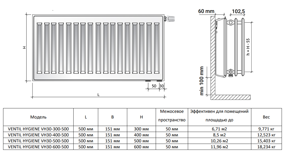 Радиатор панельный Royal Thermo VENTIL HYGIENE VH30-400-500 Noir Sable