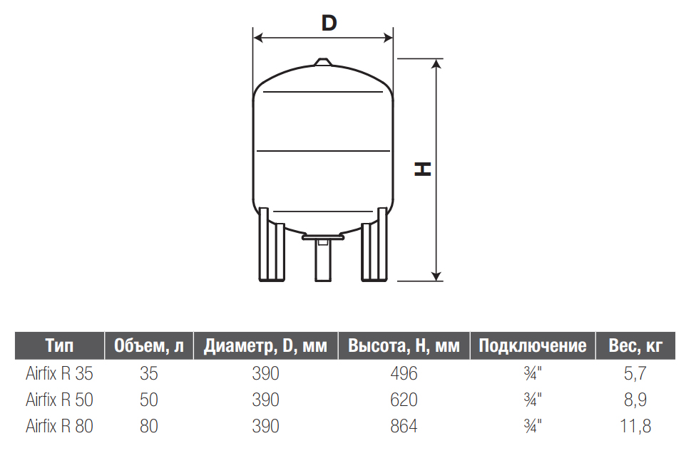 НазначениеДля защиты систем хозяйственно-бытового водоснабжения от температурного расширения, а также для использования в качестве гидроаккумуляторов