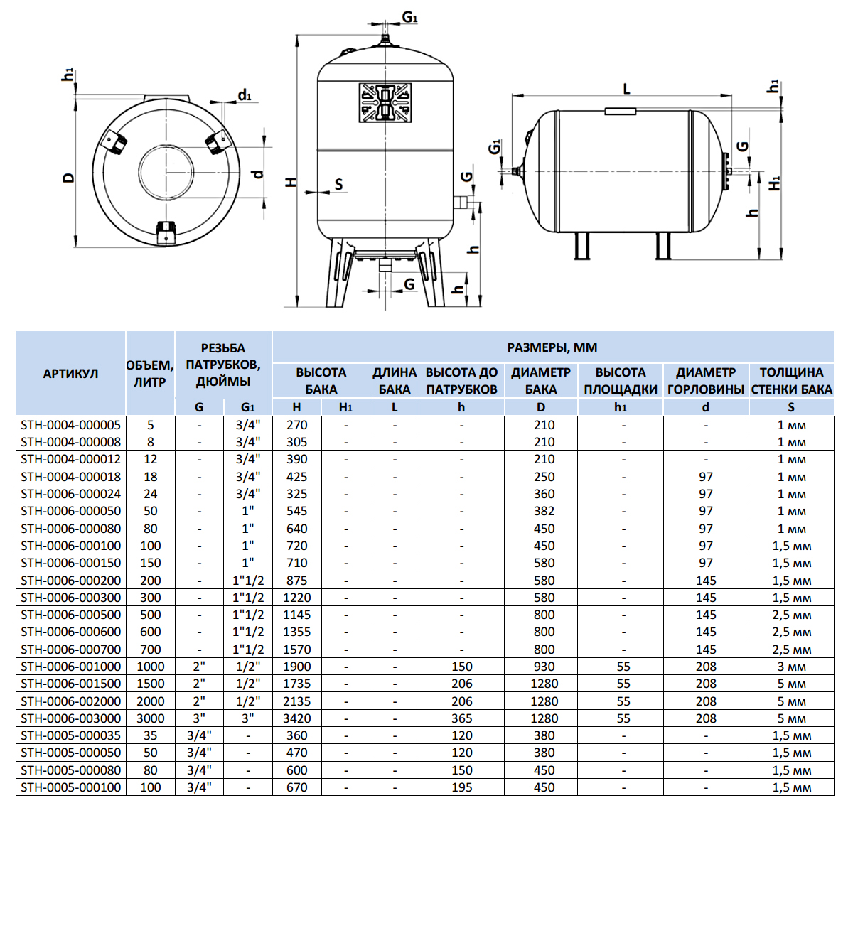 Расширительный бак STOUT STH-0006 на отопление 150 л.