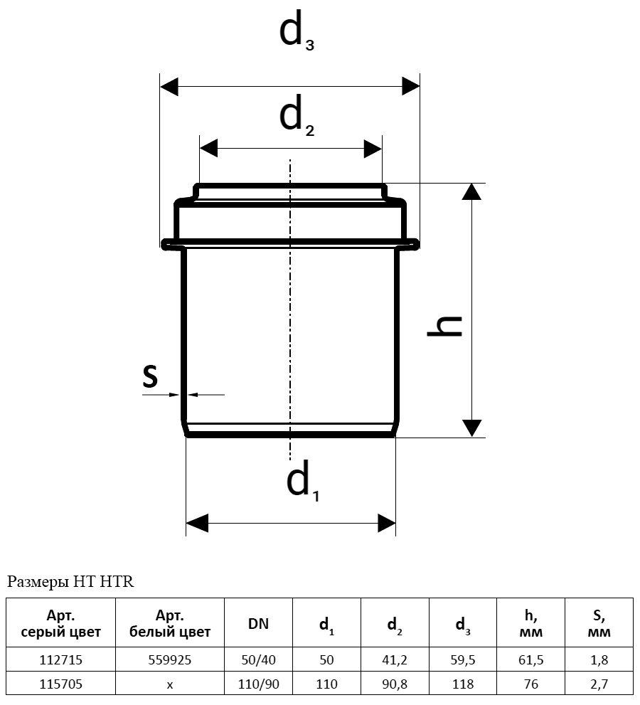 Редукция короткая PP-H Ostendorf HT HTR DN 50/40 цвет серый