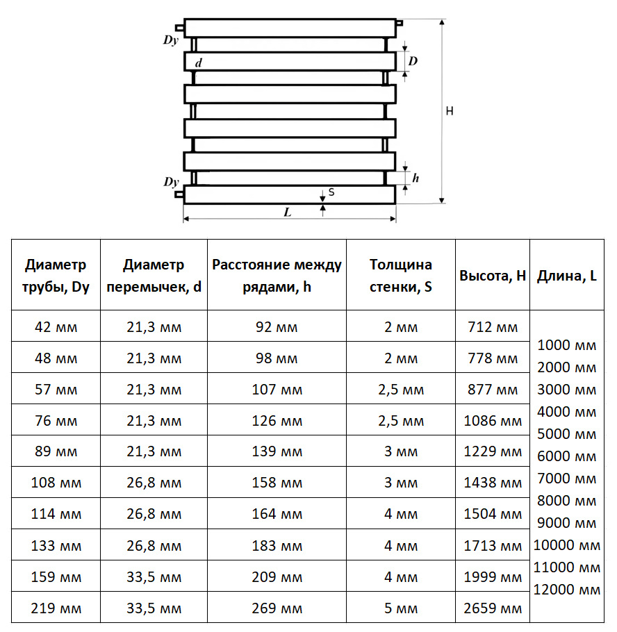Регистр отопления РСЭ-6x57x2,5-10000 секционный шестирядный с эллиптическими заглушками
