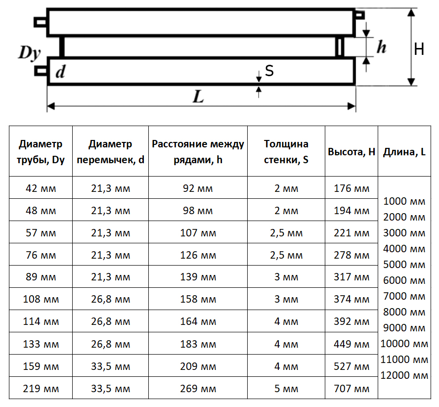Регистр отопления РСП-2x89x3,0-5000 секционный двухрядный с плоскими заглушками