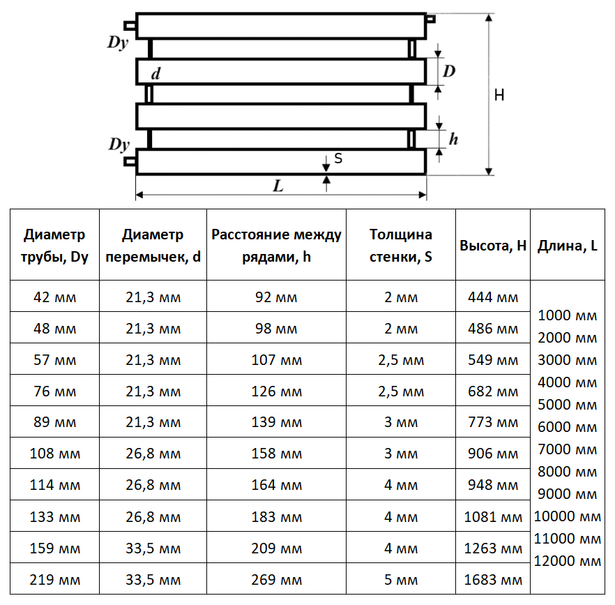 Регистр отопления РСП-4x42x2,0-11000 секционный четырёхрядный с плоскими заглушками