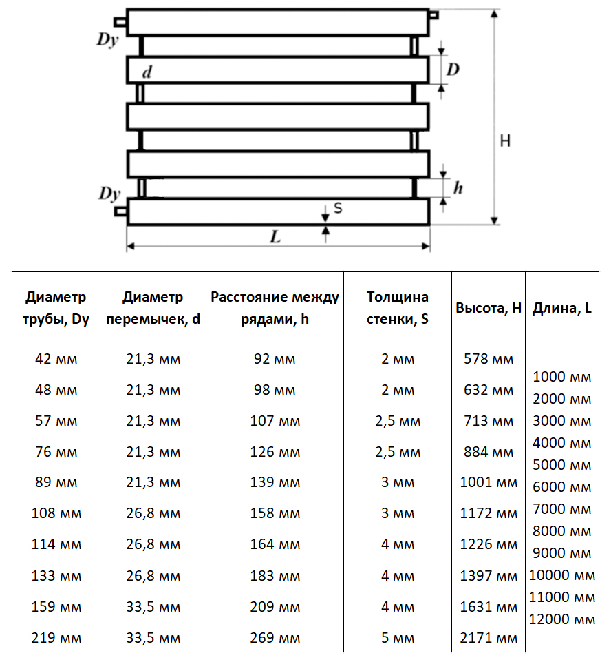Регистр отопления РСП-5x76x2,5-4000 секционный пятирядный с плоскими заглушками