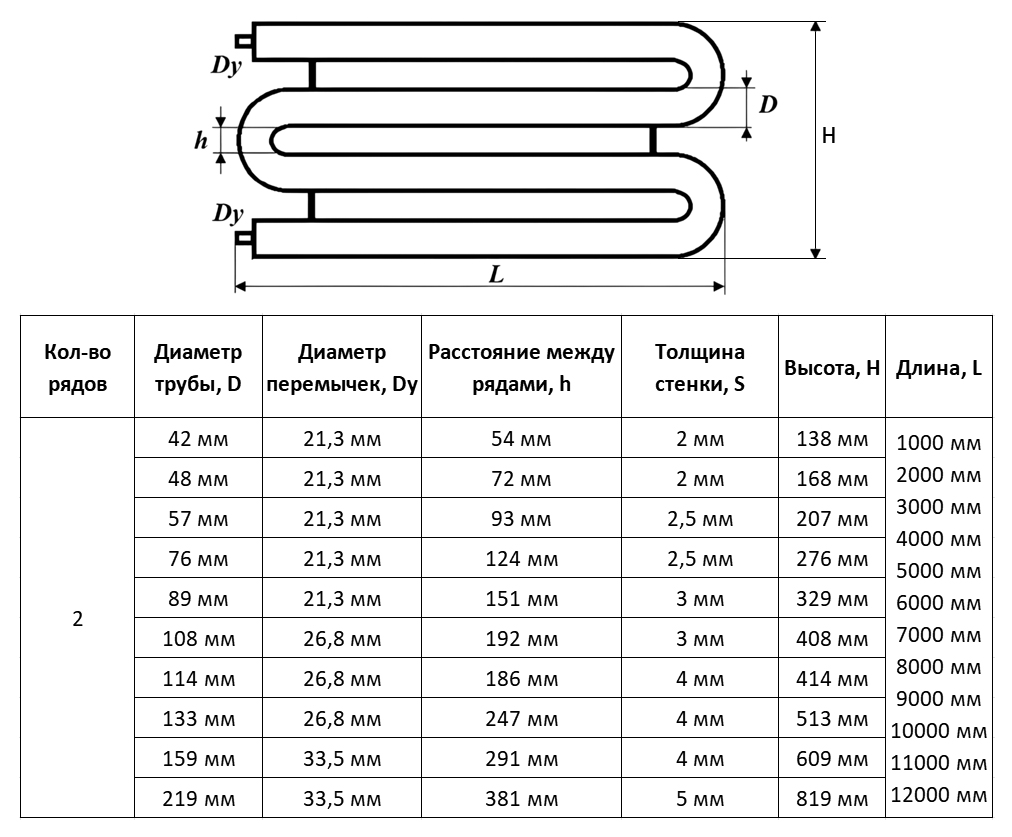 Регистр отопления РЗЭ-2x42x2,0-12000 змеевиковый двухрядный с эллиптическими заглушками