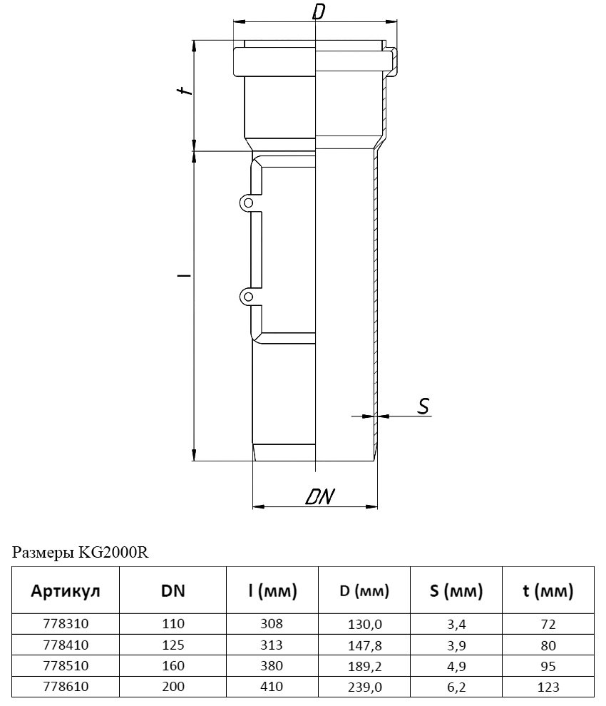 | Длина раструба | |