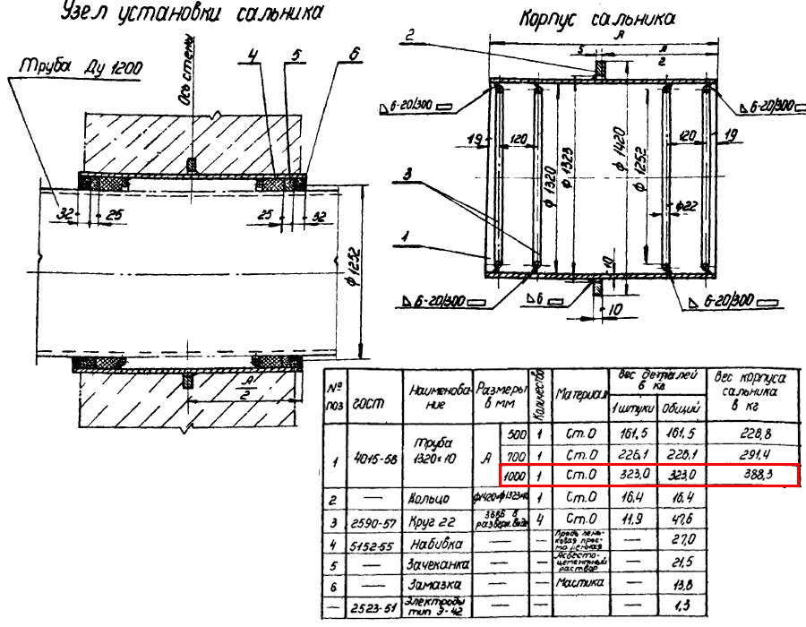 Сальник набивной Ду 1200 L=1000 мм ВС-02-10