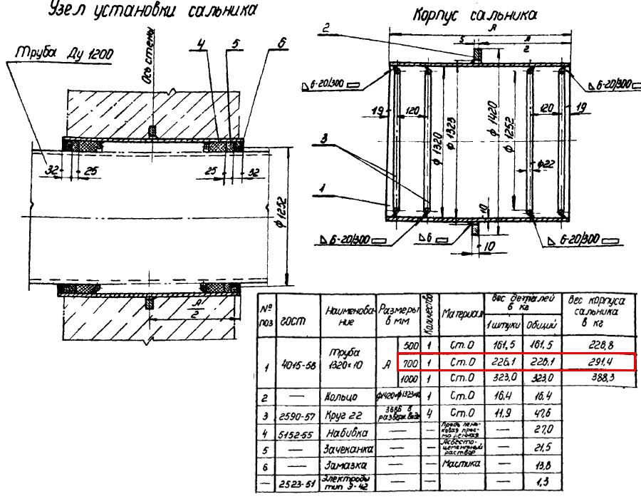 Сальник набивной Ду 1200 L=700 мм ВС-02-10