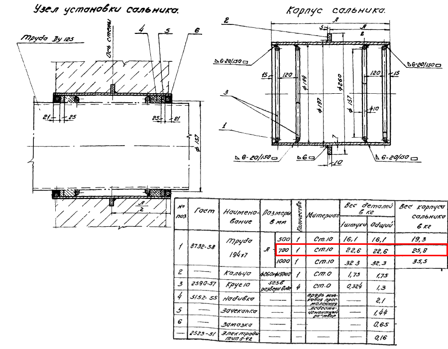 Сальник набивной Ду 125 L=700 мм ВС-02-10