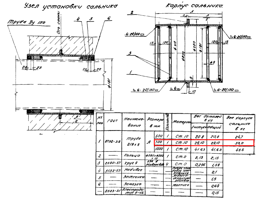 Сальник набивной Ду 150 L=700 мм ВС-02-10