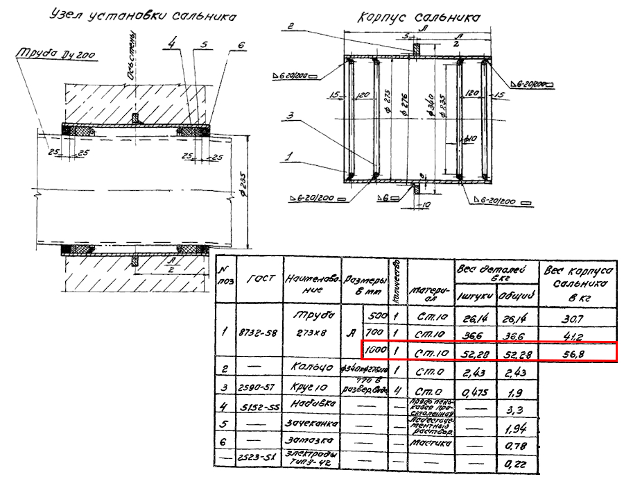 Сальник набивной Ду 200 L=1000 мм ВС-02-10