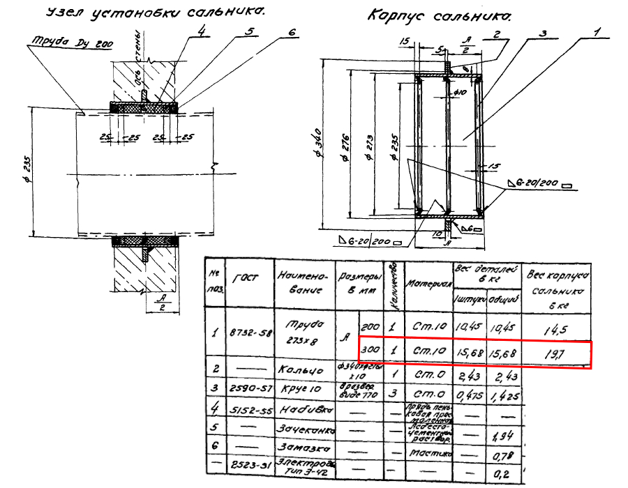 Сальник набивной Ду 200 L=300 мм ВС-02-10
