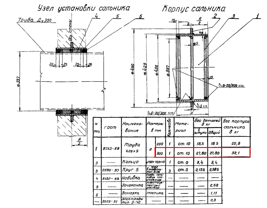 Сальник набивной Ду 350 L=300 мм ВС-02-10