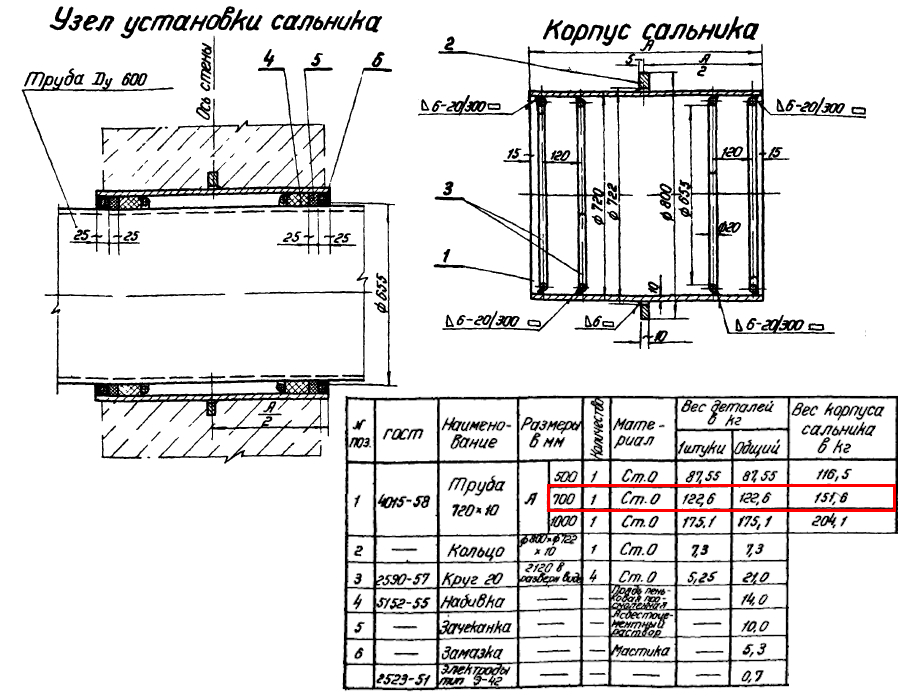 Сальник набивной Ду 600 L=700 мм ВС-02-10