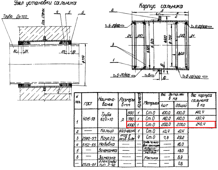 Сальник набивной Ду 700 L=1000 мм ВС-02-10