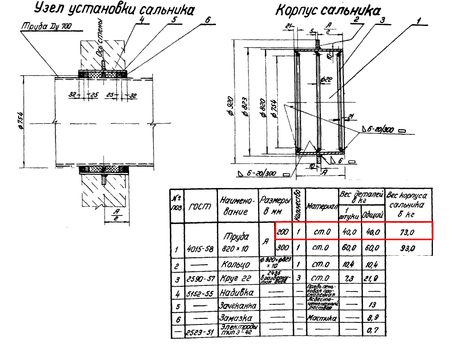 Сальник набивной Ду 700 L=200 мм ВС-02-10