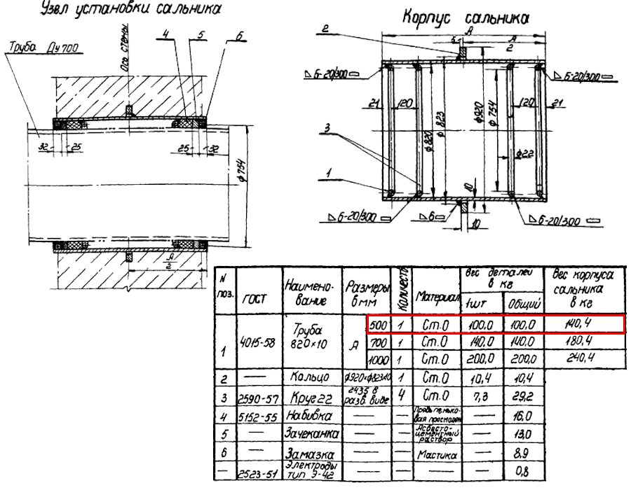 Сальник набивной Ду 700 L=500 мм ВС-02-10