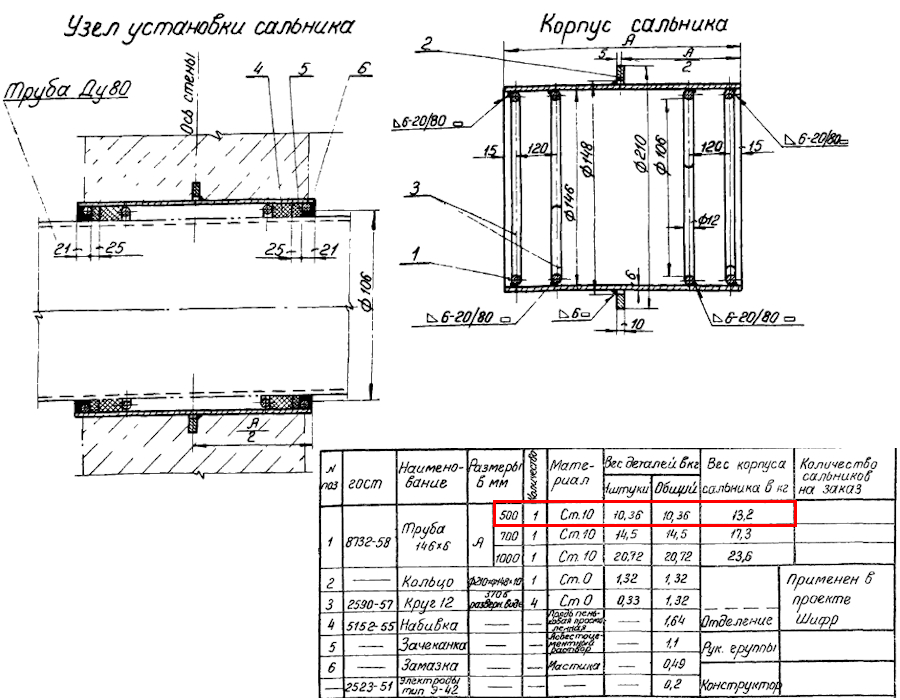 Сальник набивной Ду 80 L=500 мм ВС-02-10