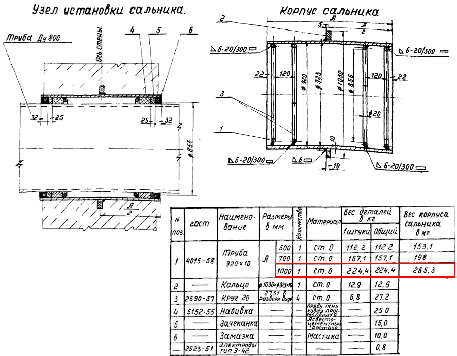 Сальник набивной Ду 800 L=1000 мм ВС-02-10
