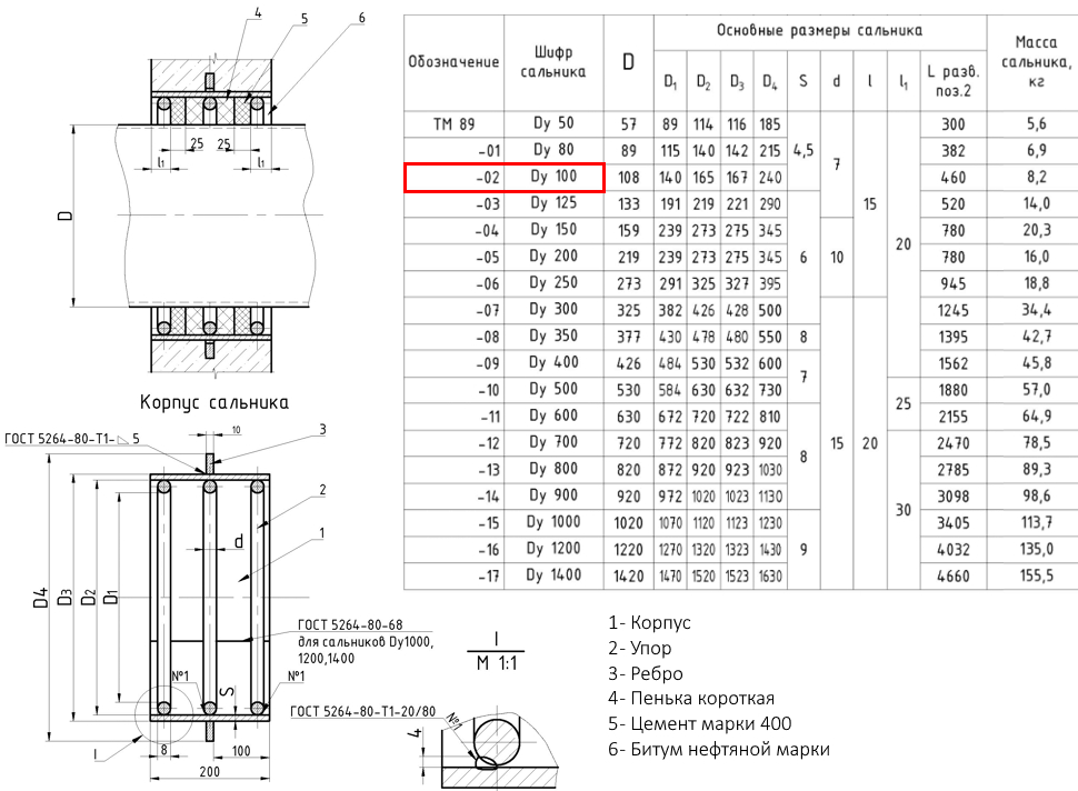 Сальник набивной ТМ 89-02 Ду 100 L=200мм серия 5.900-2