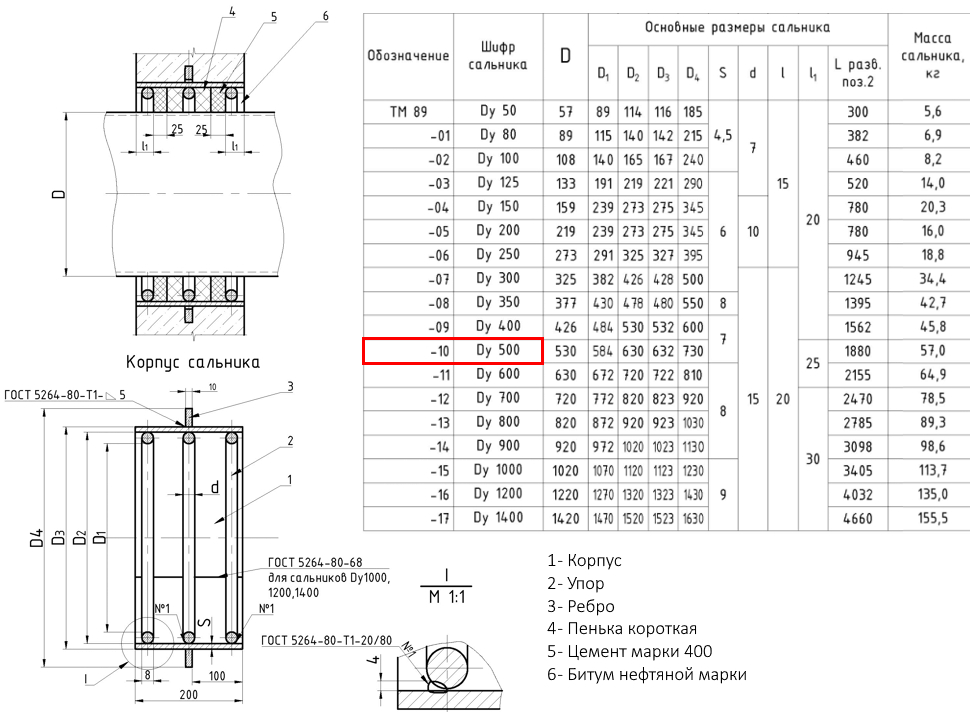 Сальник набивной ТМ 89-10 Ду 500 L=200мм серия 5.900-2