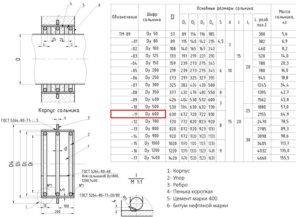 Сальник набивной ТМ 89-11 Ду 600 L=200мм серия 5.900-2