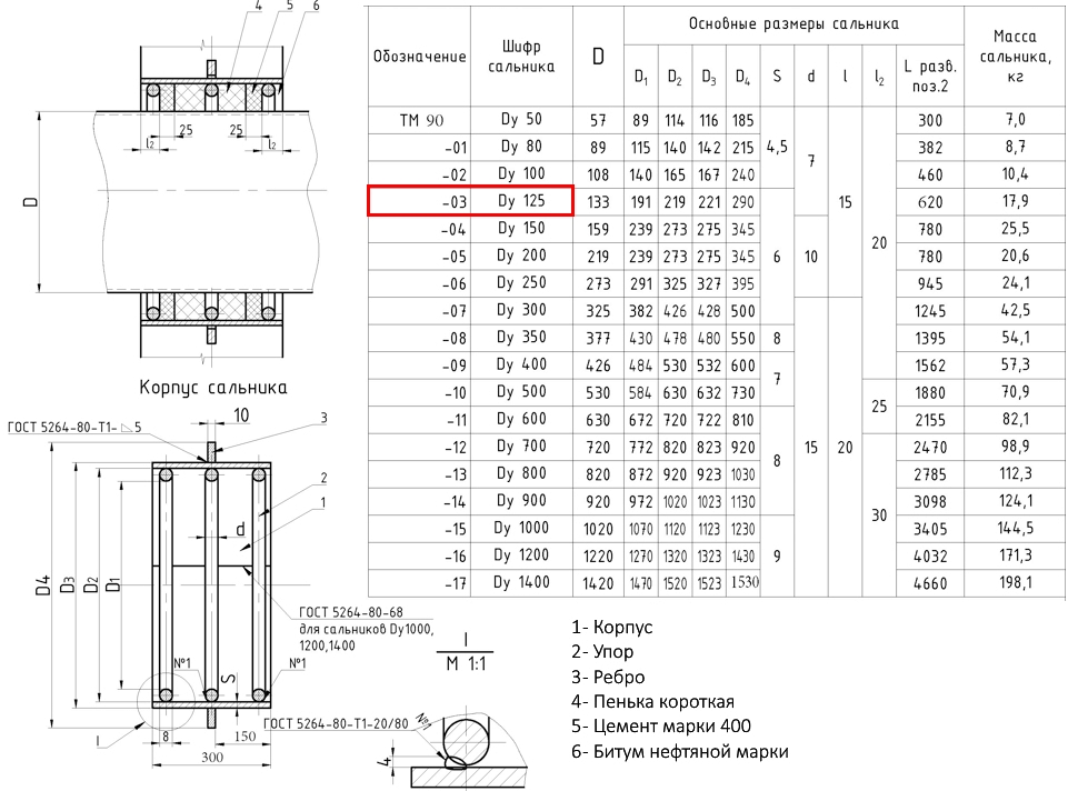 Сальник набивной ТМ 90-03 Ду 125 L=300мм серия 5.900-2