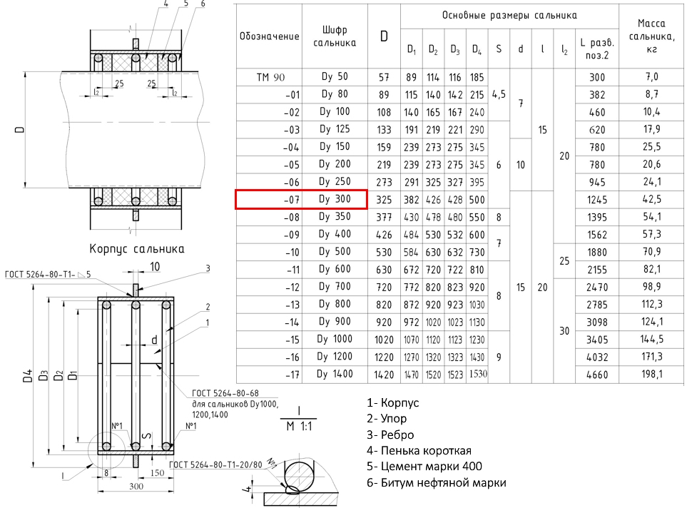 Сальник набивной ТМ 90-07 Ду 300 L=300мм серия 5.900-2
