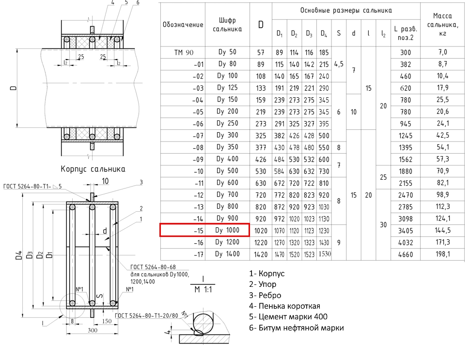 Сальник набивной ТМ 90-15 Ду 1000 L=300мм серия 5.900-2